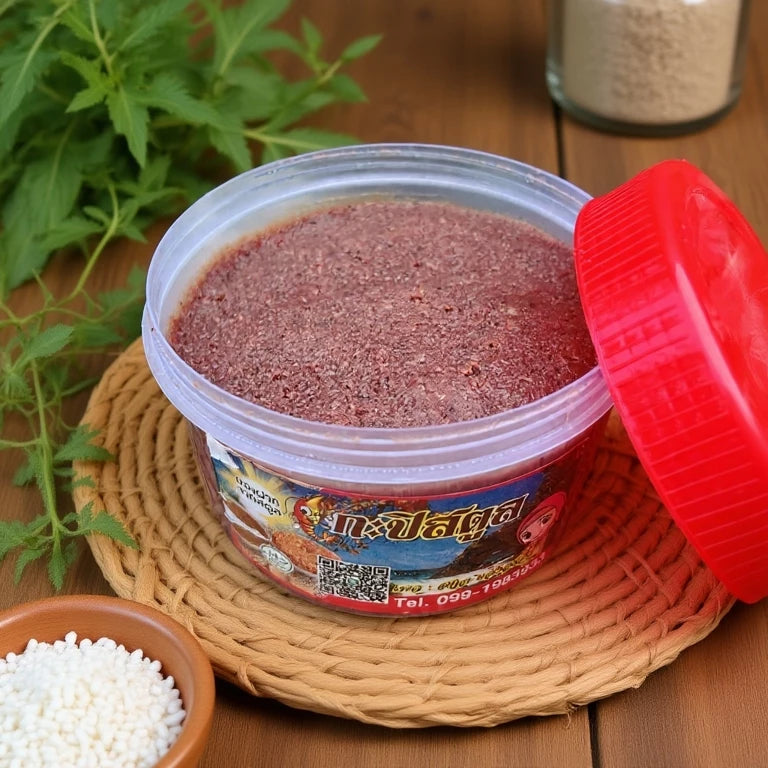 รสชาติกลมกล่อมจากธรรมชาติ: กะปิสตูลแท้ ผลิตจากกุ้งทะเลแท้ รสชาติกลมกล่อม เหมาะสำหรับการทำอาหารทุกประเภท ไม่ว่าจะเป็นแกง น้ำพริก หรือเมนูโปรดของคุณ! ไม่ใส่ผงชูรส: ปลอดภัยสำหรับผู้ที่แพ้ผงชูรส ให้คุณมั่นใจในความปลอดภัยและความอร่อยทุกคำ! สัมผัสรสชาติที่แท้จริงจากกะปิสตูล ที่จะทำให้ทุกมื้ออาหารของคุณอร่อยยิ่งขึ้น! 500g