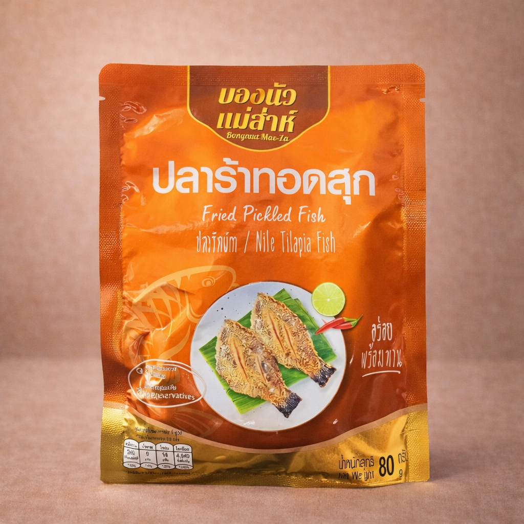 ปลาร้าปลานิล หมักได้ที่ ก่อนนำมาทอด ผ่านขบวนสเตอริไรส์ หอมเนื้อนิ่ม 80g